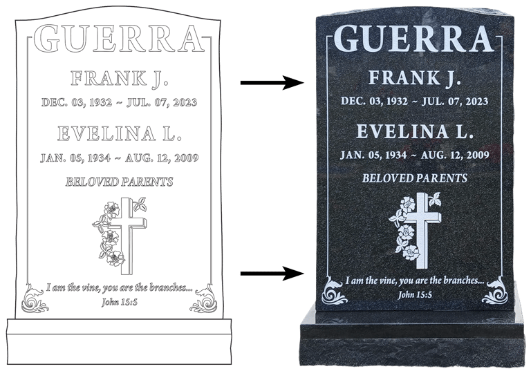 At the heart of what we do is a commitment to honoring your loved ones. We take immense pride in crafting beautiful upright headstones.