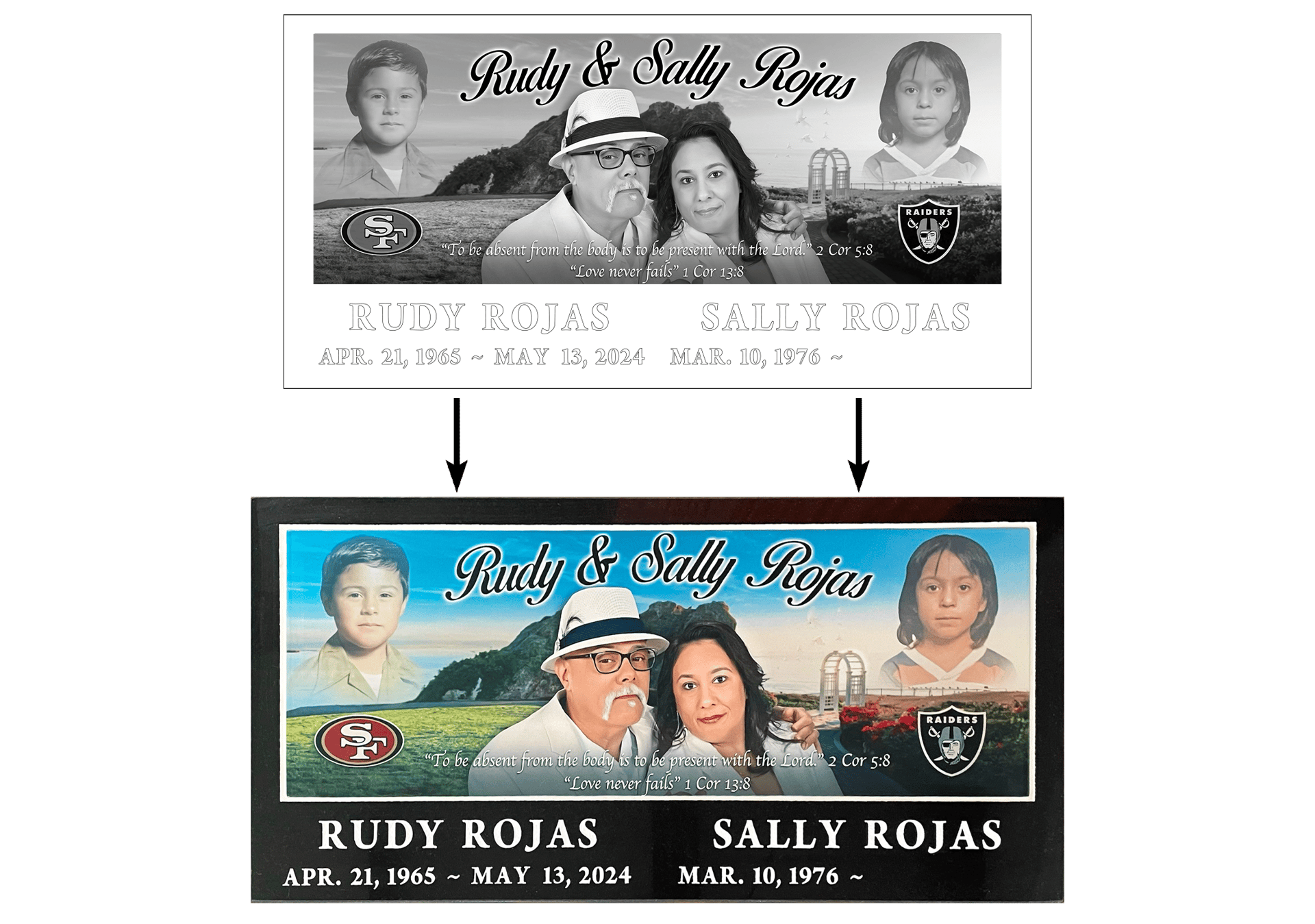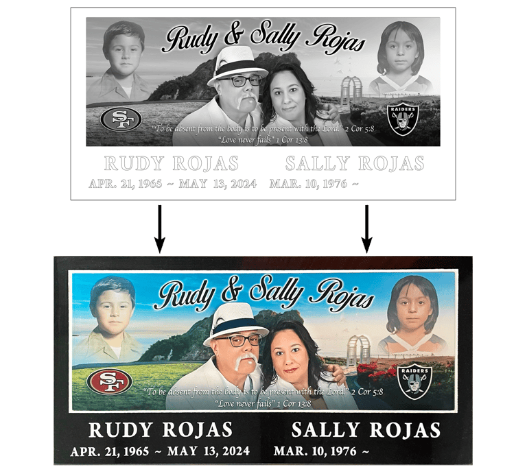 As the first company to introduce full-color flat markers to the United States, we lead the industry in vibrant, lasting tributes. Our signature large-format photo tiles can span up to 22" x 10", perfectly fitting a standard 24" x 12" granite base to create a stunning, natural stone border in the color of your choice.